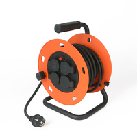 Znpon Tf7 Vier Franse Socket & A Schuko Plug Open Kabelhaspel Met Kronkelende Handgreep, Thermisch Uitgesneden En Indicatielampje, Oranje